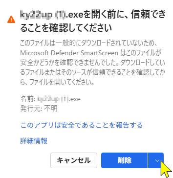 | 右が表示された場合は、 詳細情報 をクリックします |
